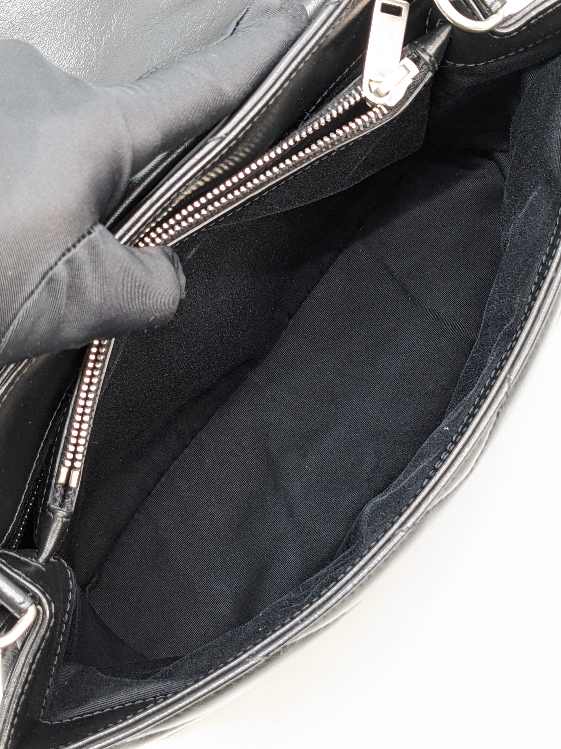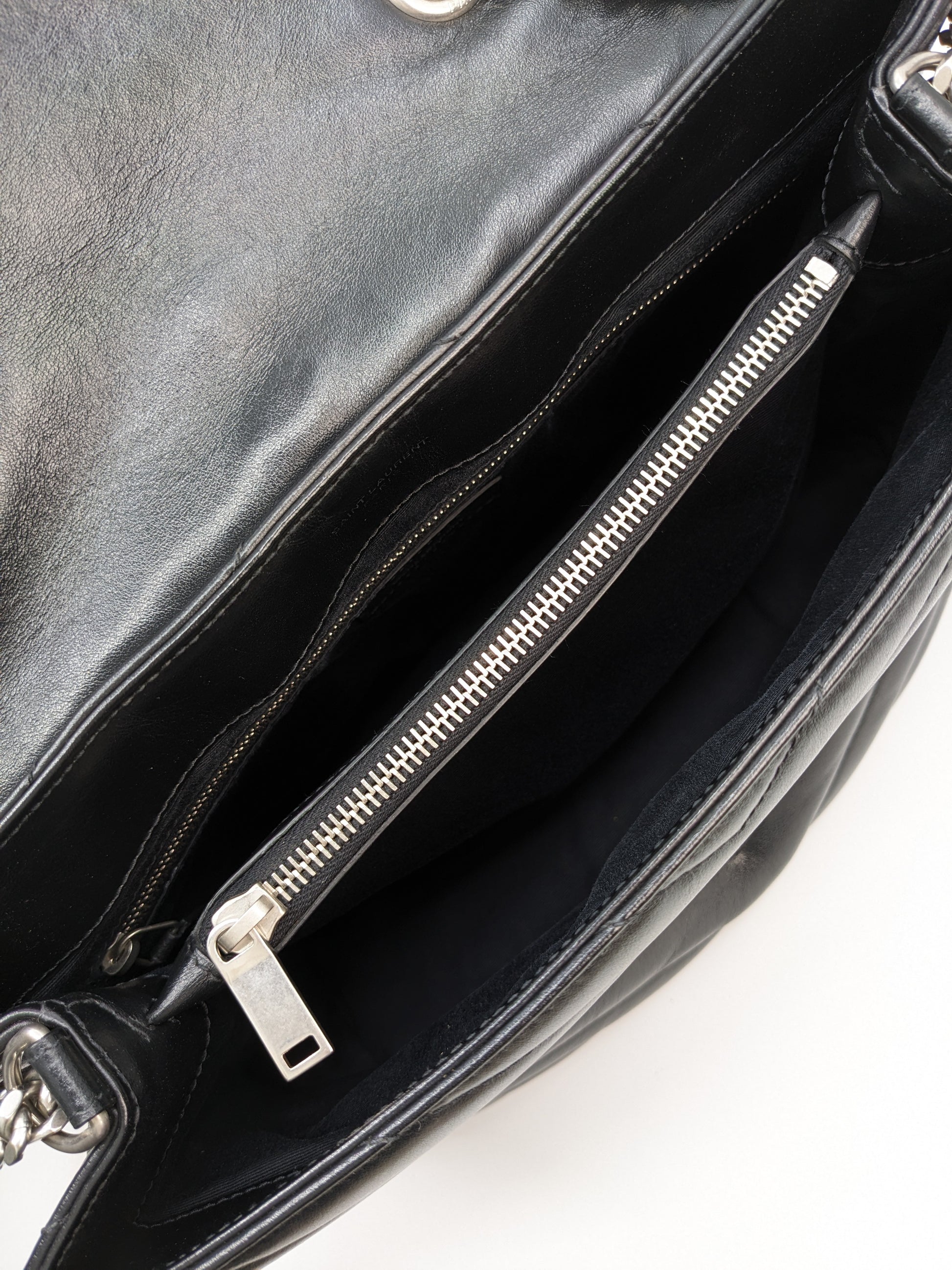 The Saint Laurent LouLou Medium in Black with Silver Hardware (SHW) is a sleek, sophisticated shoulder bag that blends modern edge with timeless elegance. Crafted from supple quilted calfskin leather, it features the iconic YSL monogram in silver-tone hardware and a soft, structured silhouette. The medium size offers ample space with a divided interior, perfect for daily essentials. Its sliding chain strap allows for both shoulder and crossbody wear. A versatile staple that effortlessly elevates any look.